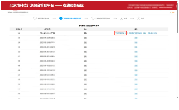 5、下載預留印鑒卡并加蓋公章后,再次上傳。即完成注冊